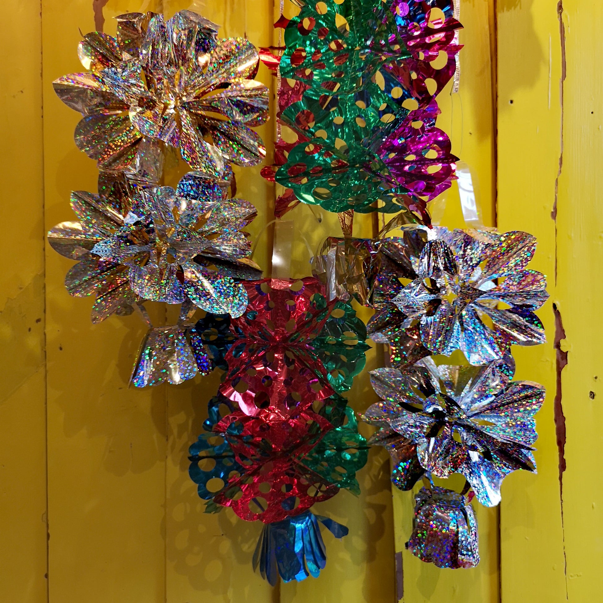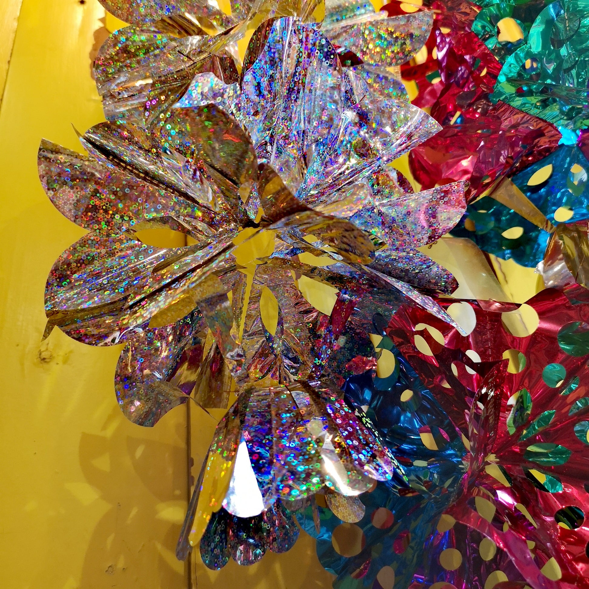 Rainbow foil & holographic honeycomb decorations...... But of course... All the way from our travels in India!