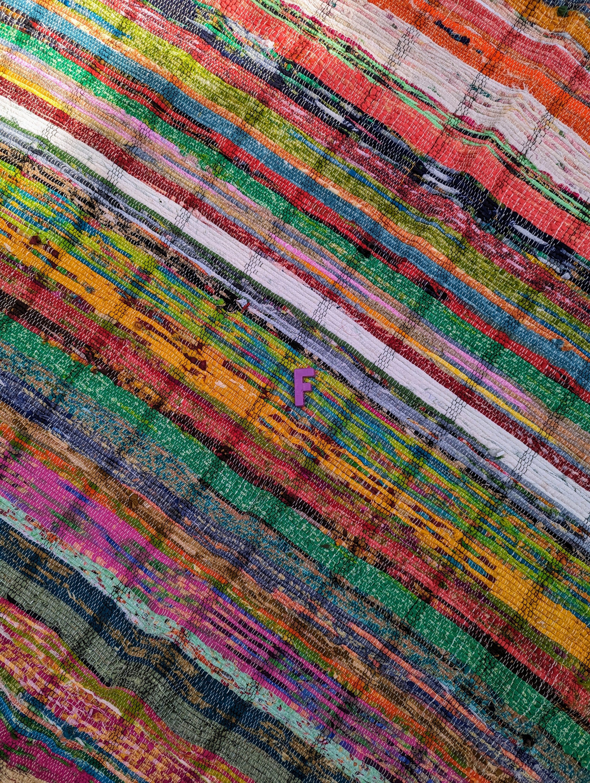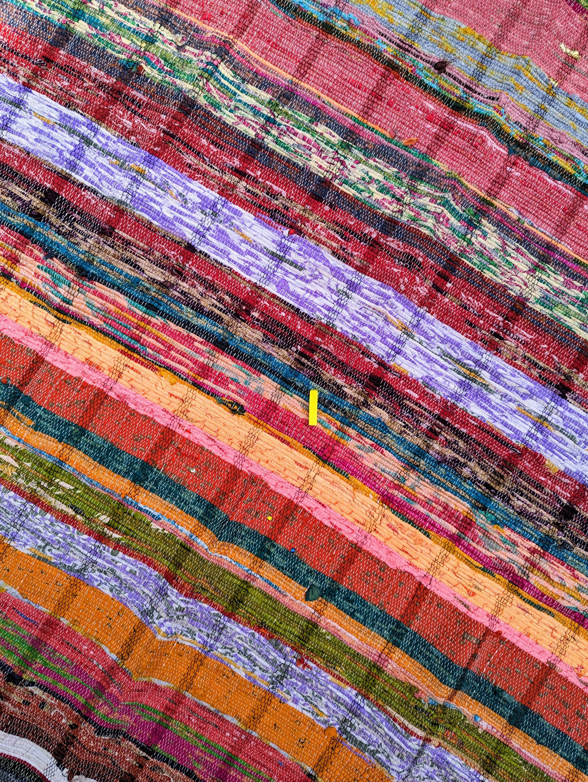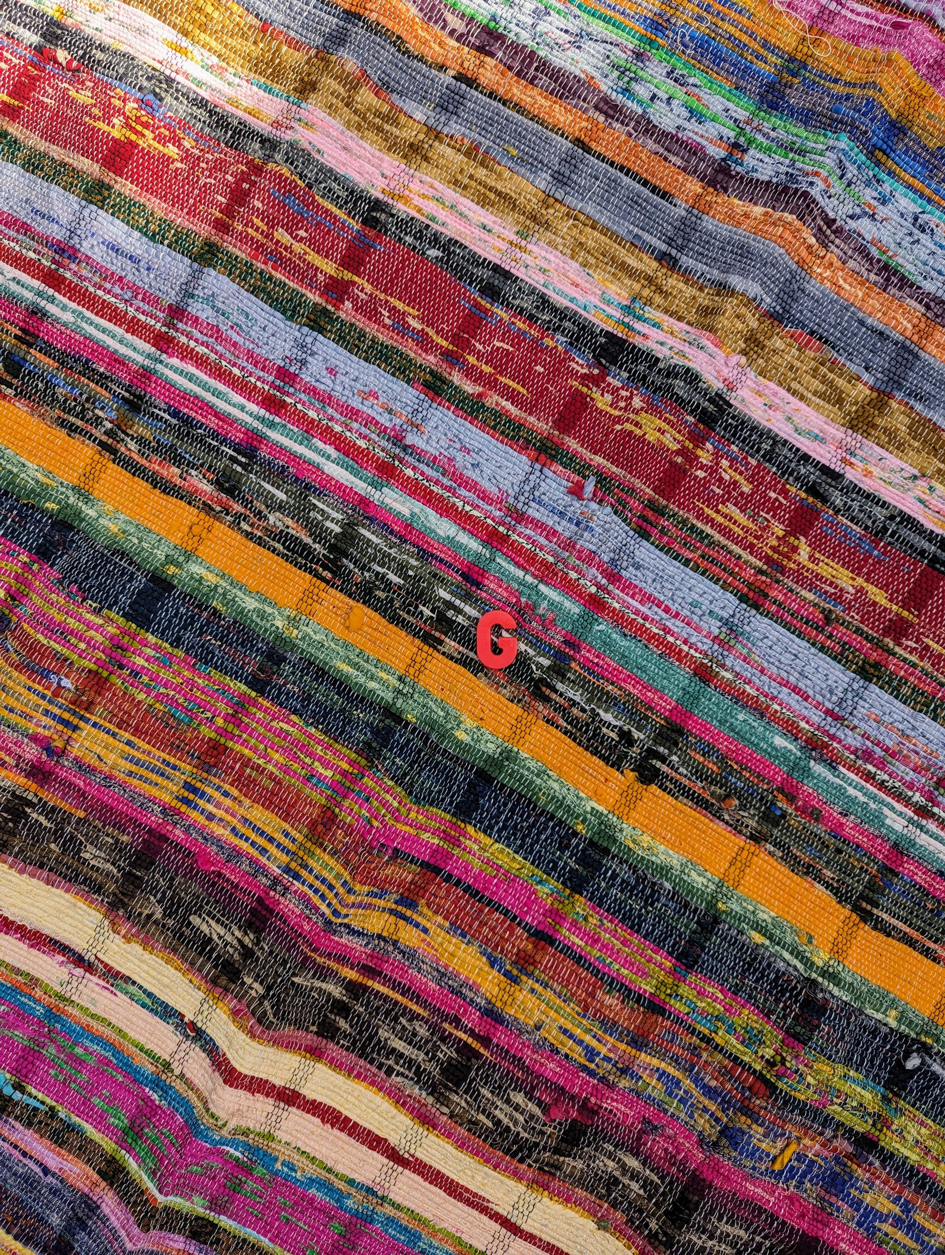 Materials commonly recycled into these rugs are cotton and synthetics. Colours may vary do to them being made from recycled resources.