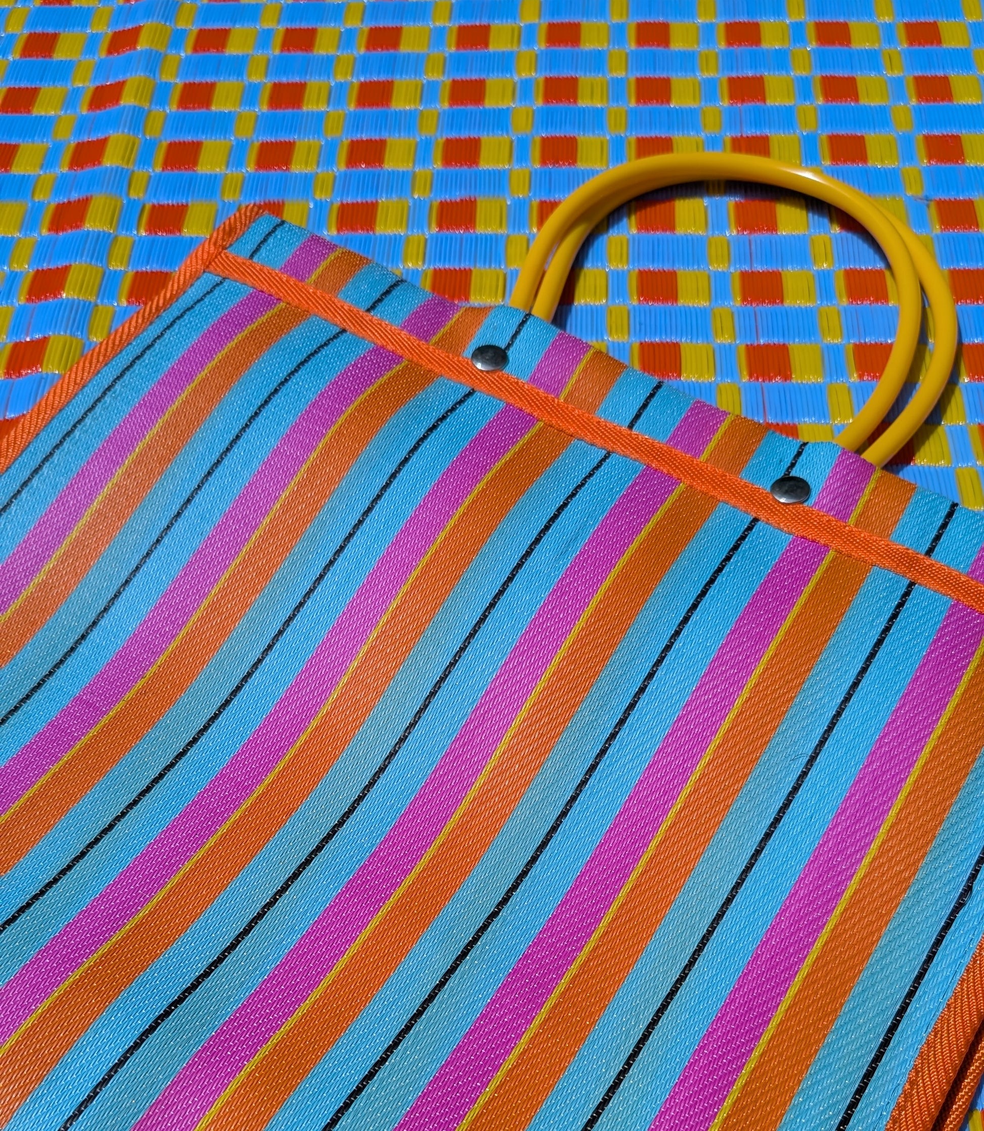 Made with recycled woven plastic in the best deckchair stripes!!