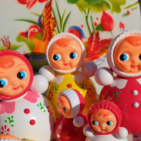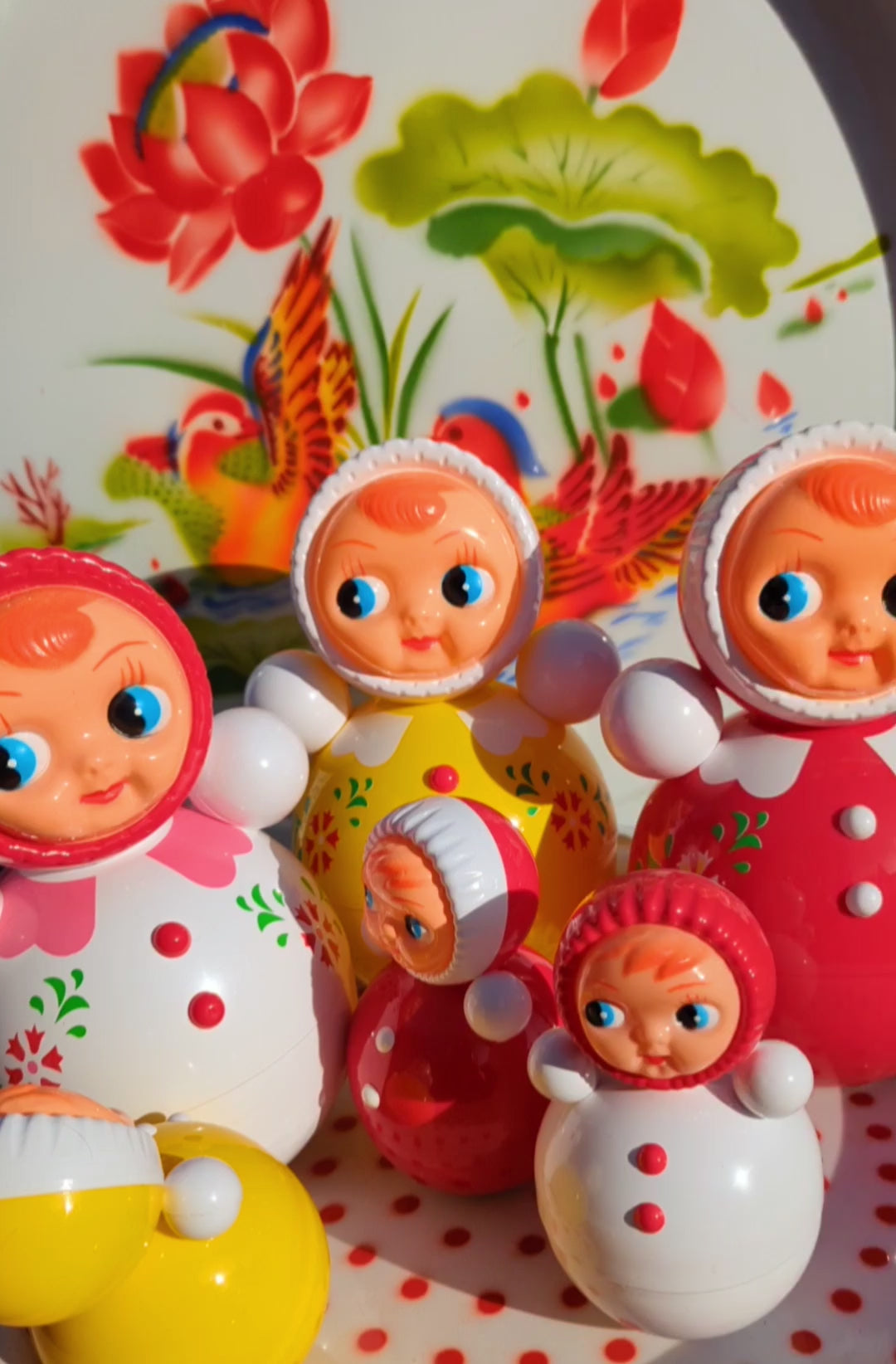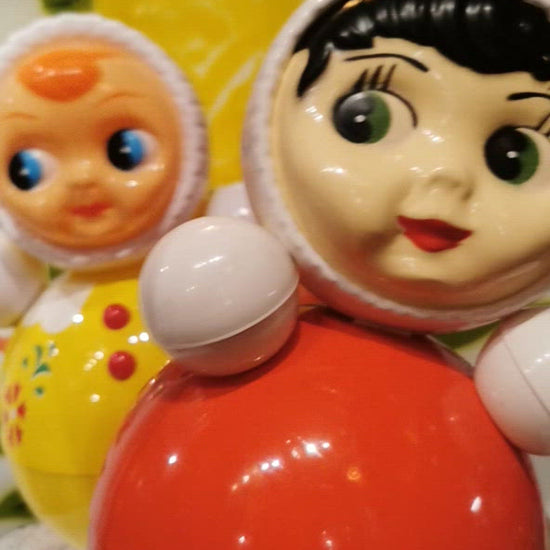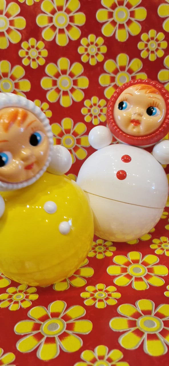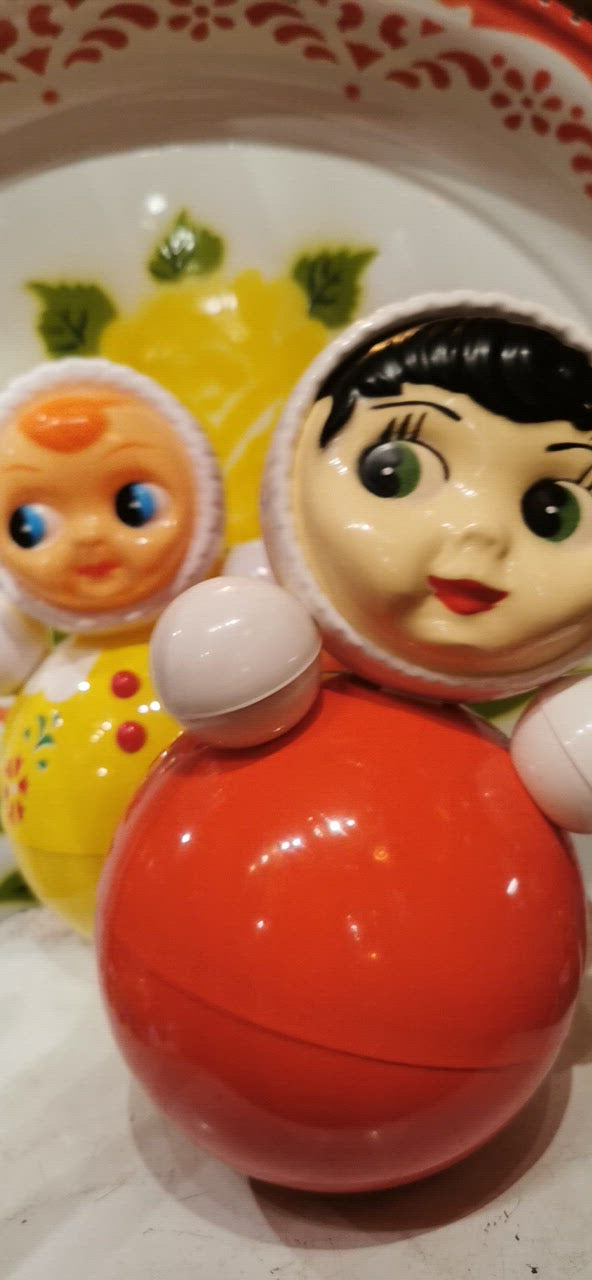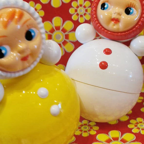Gorgeous tinkling bell sounds when these roly poly dolls are rolled around, cheeky faces too!