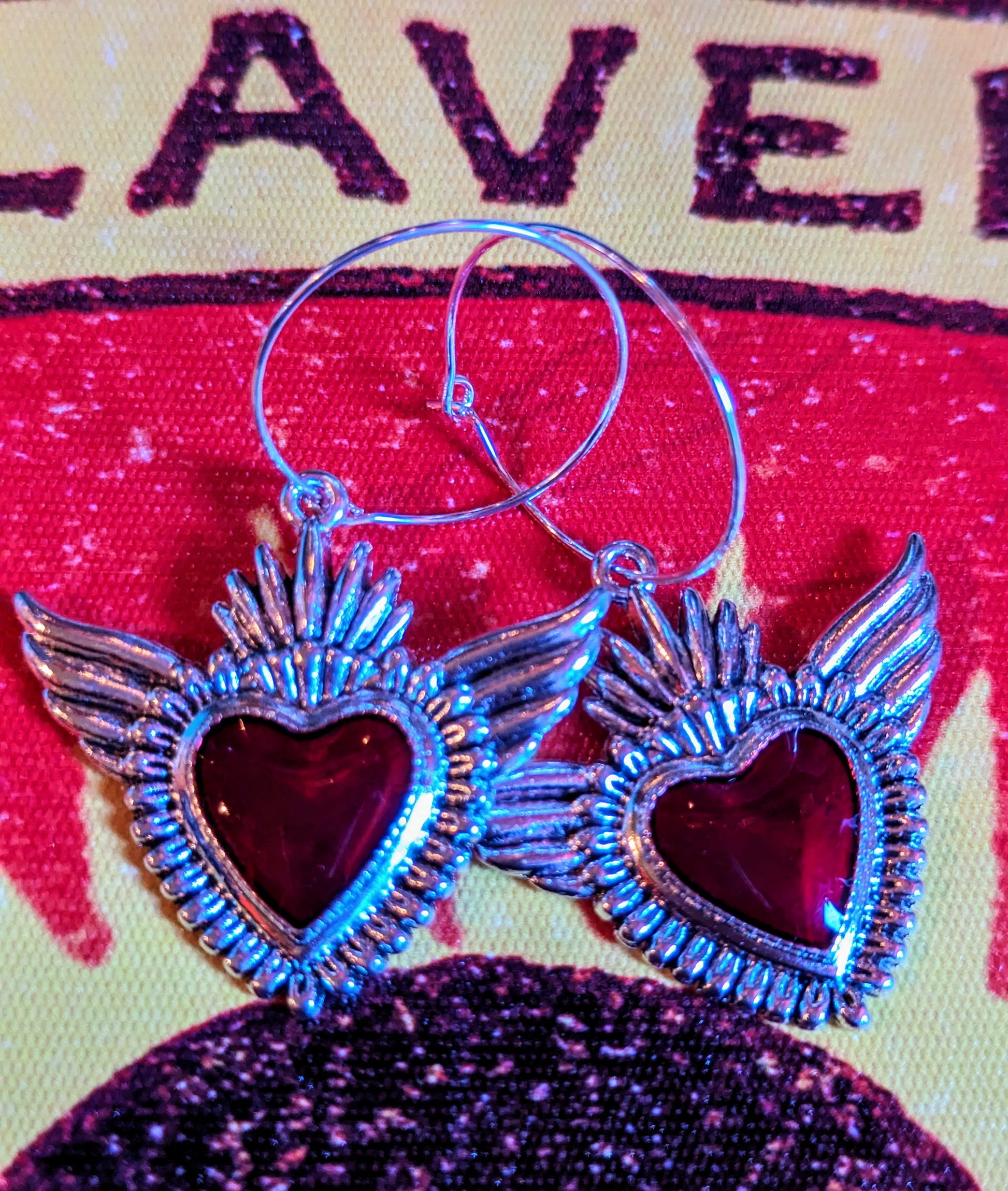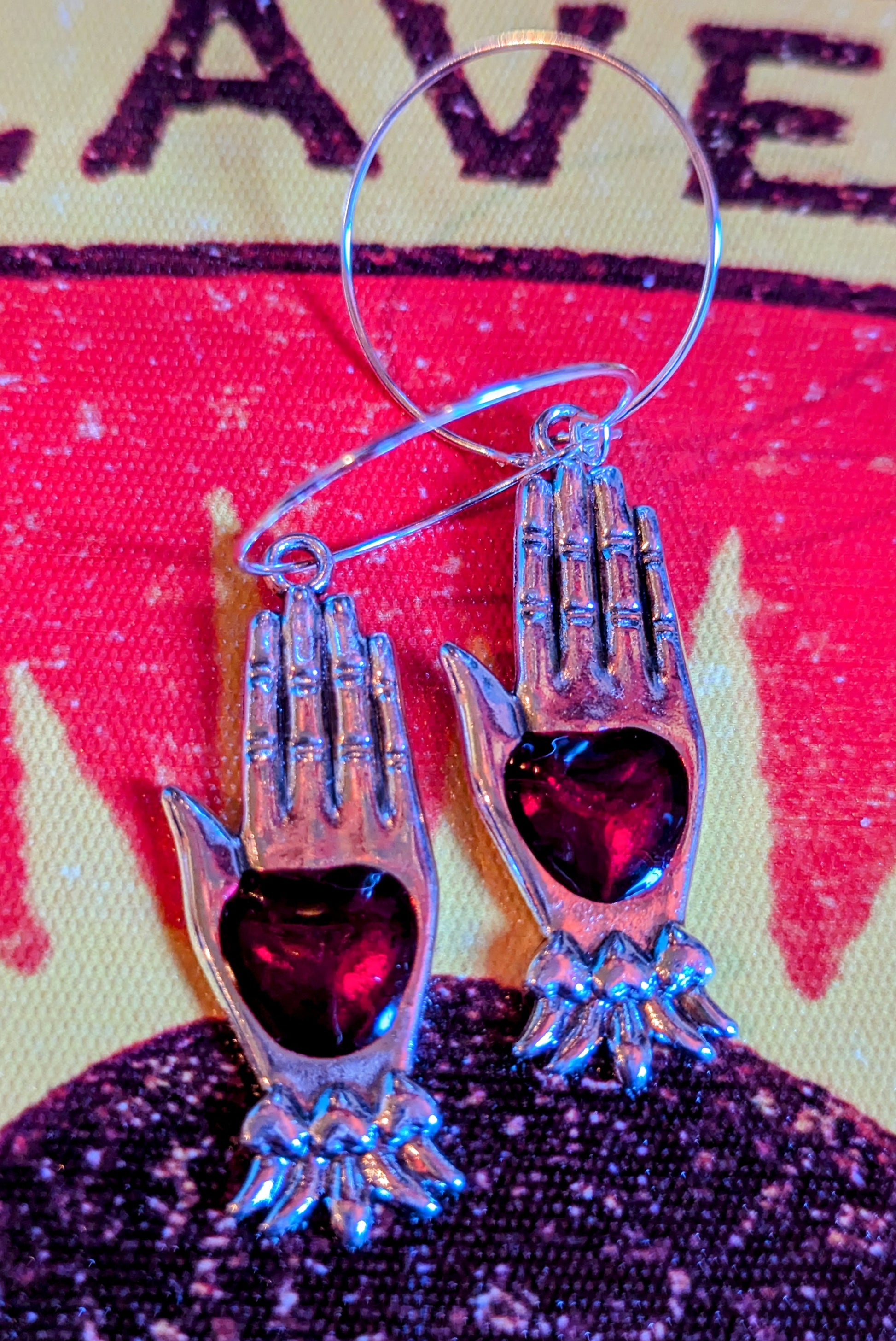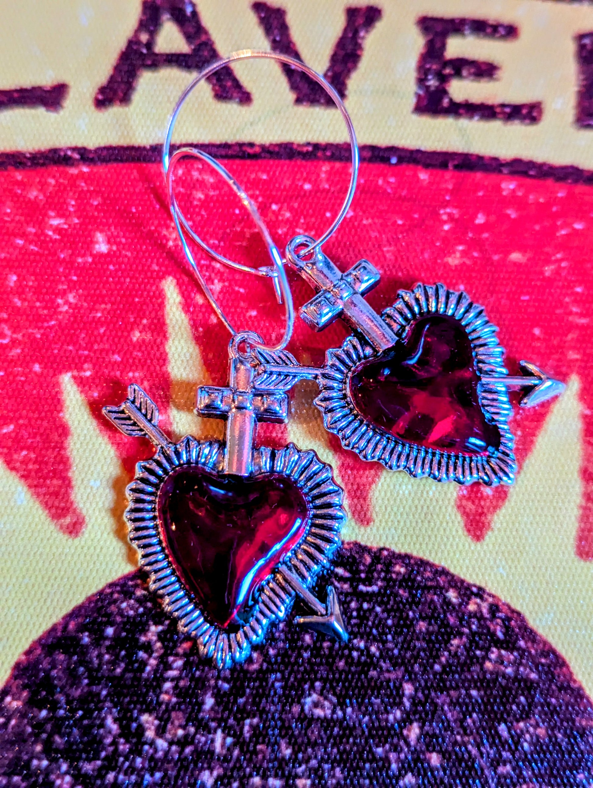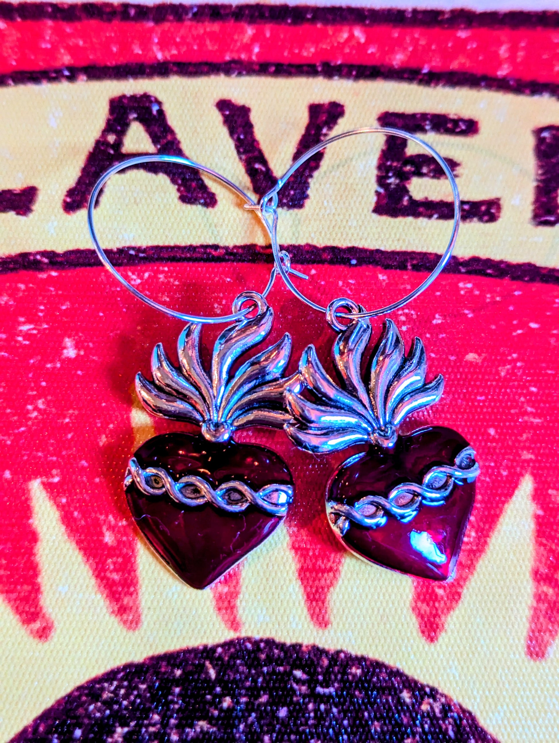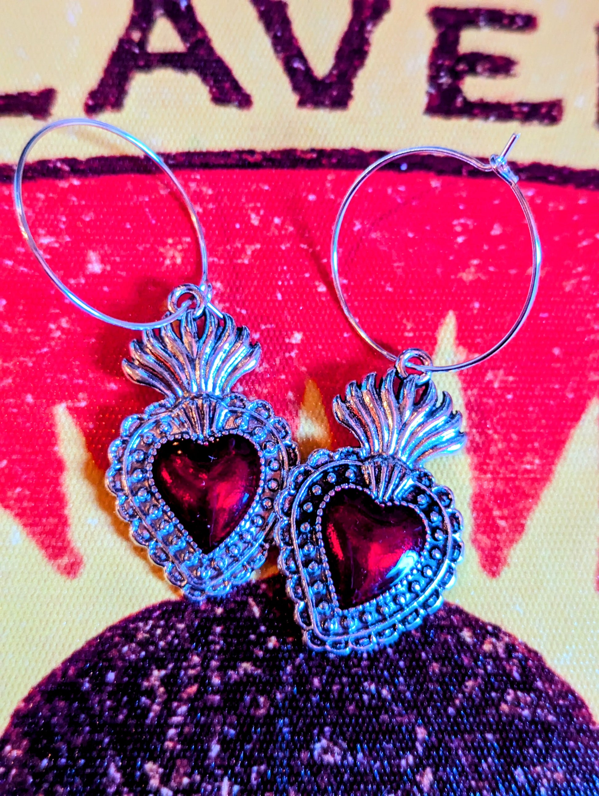 All the love with these fabulous sacred heart and hand big and beautiful hoops!