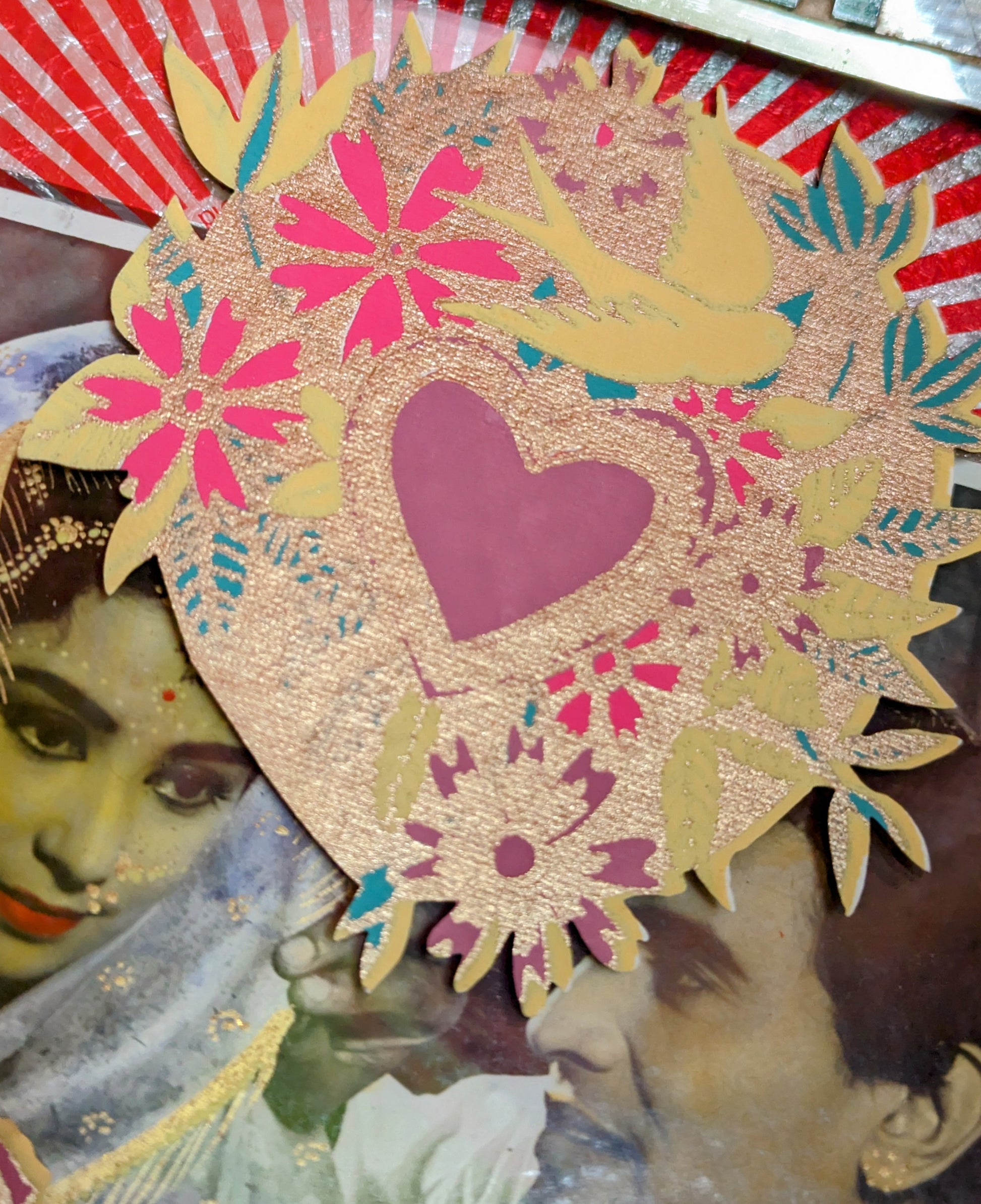 Inspired by the loveove of Mexican folk art, these cards have gilded gold details and a beautiful decorated envelope. Die cut in the shape of a flaming heart, with a panel on the reverse for your message.