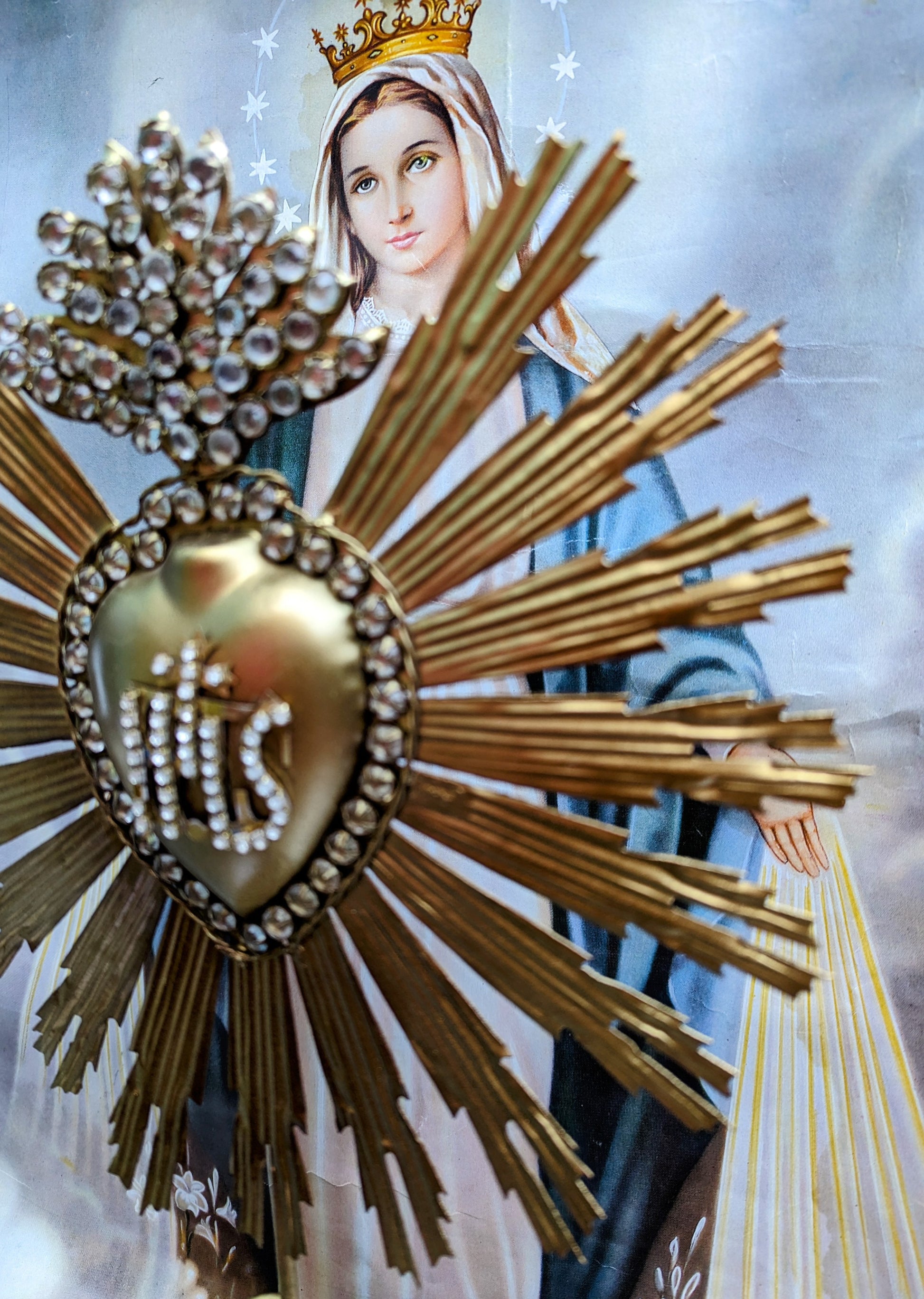 Bow down before the beauty that is this Sacred heart tree topper,/table /shelf display . Utterly lovely, and a fabulous topper for a religious kitsch decorated tree or festive display!