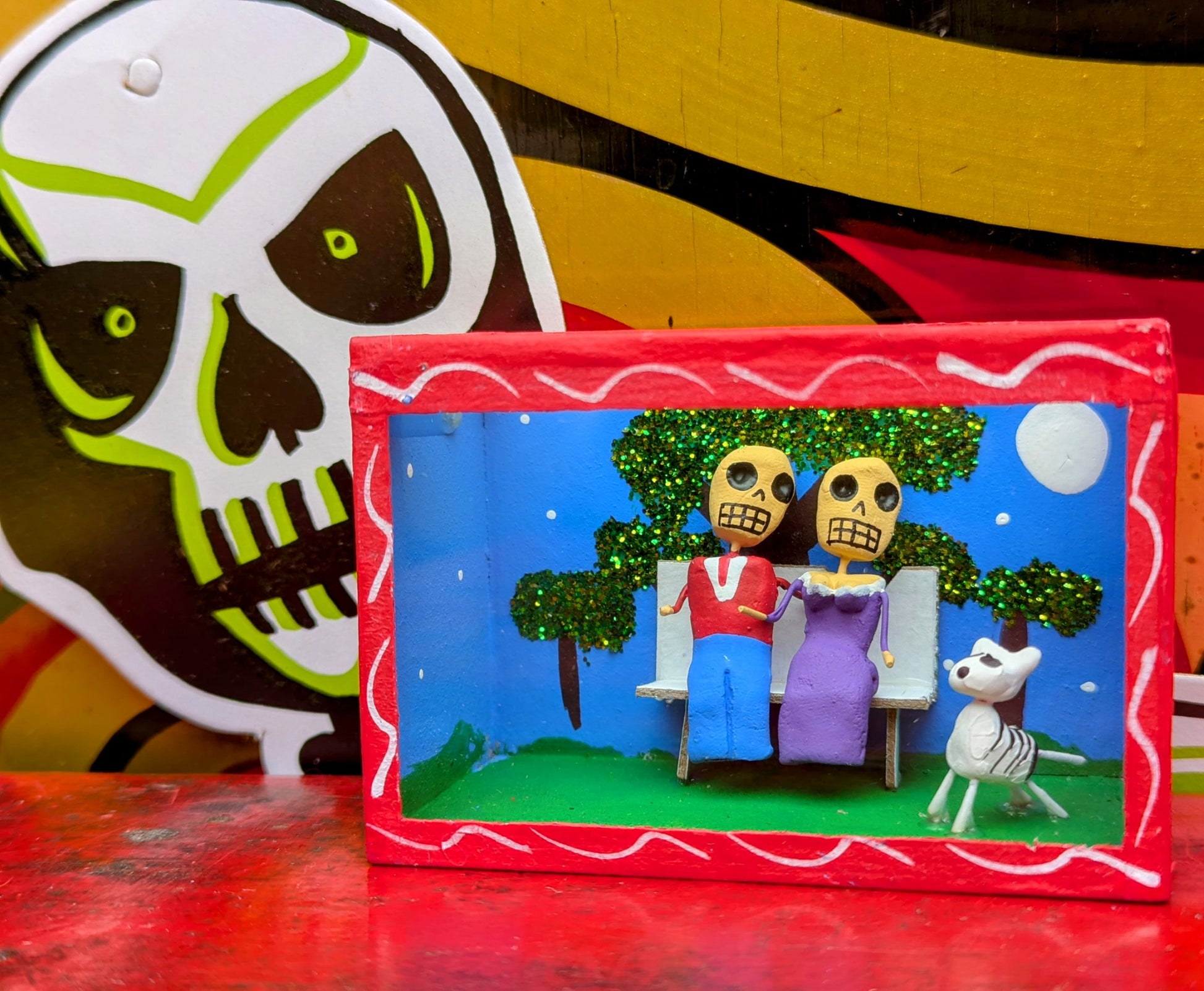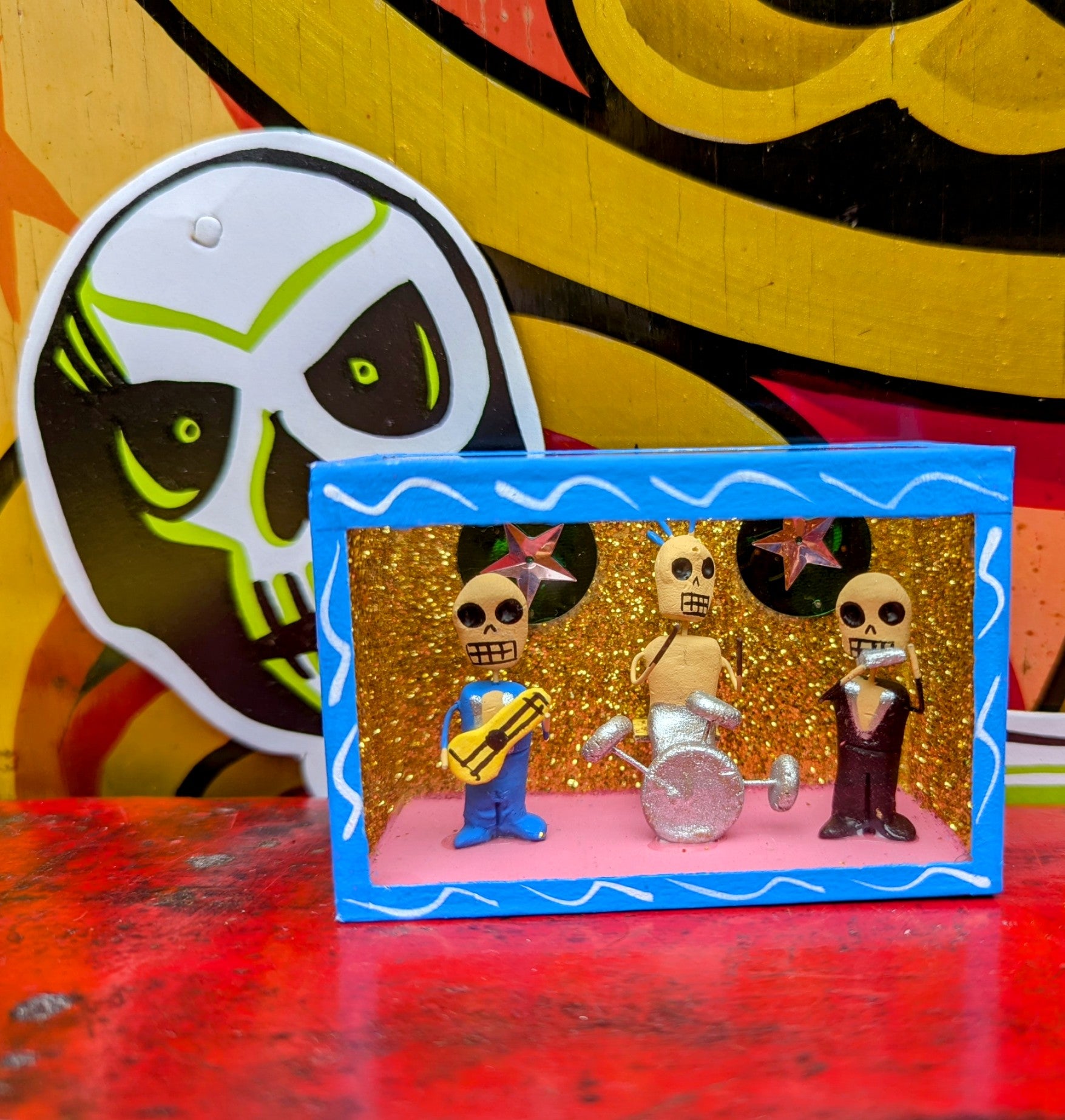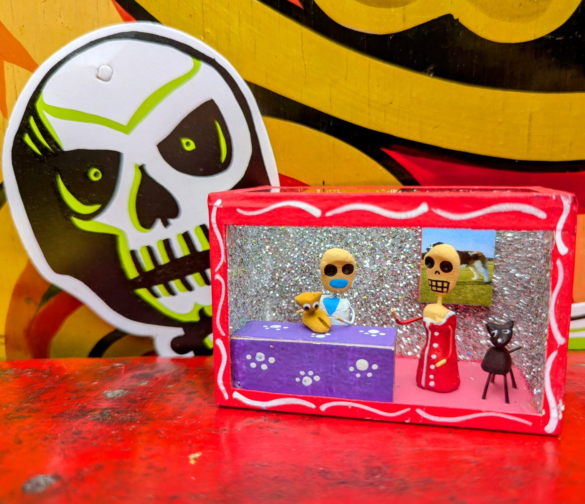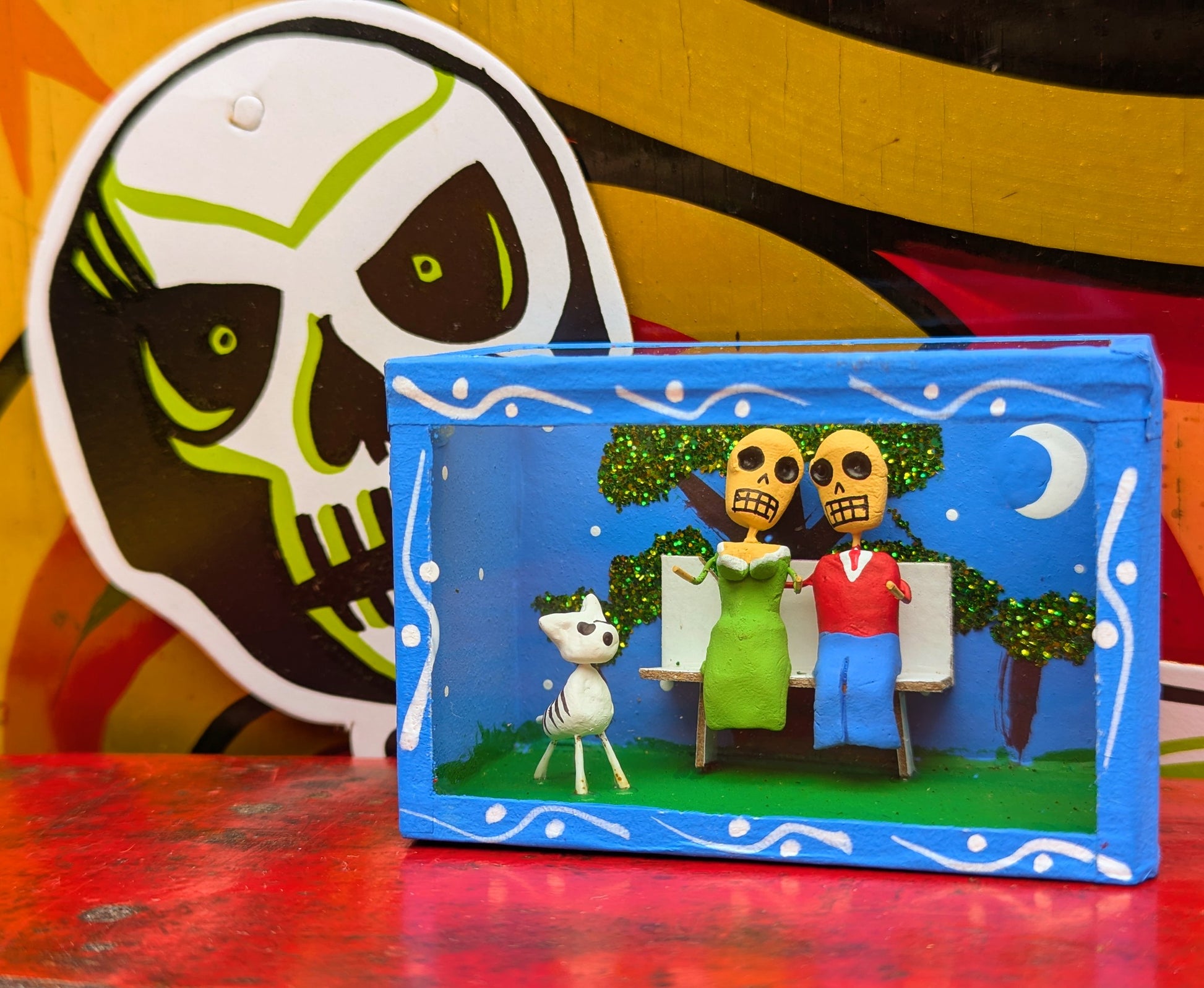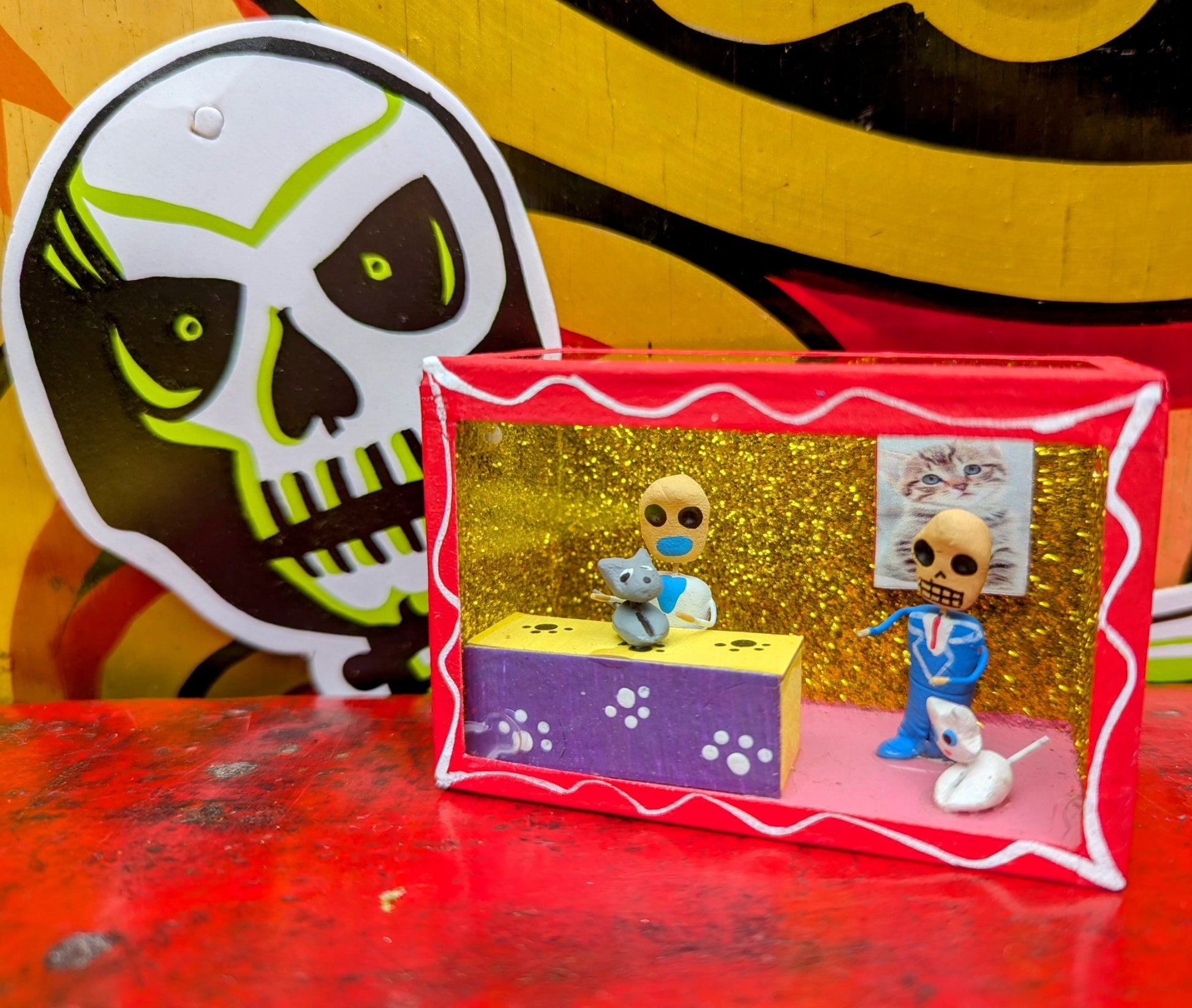 Each nichos is made by hand and unique. The themes are consistent however the colours of glitter and sequins and outfits will vary! All part of the charm!