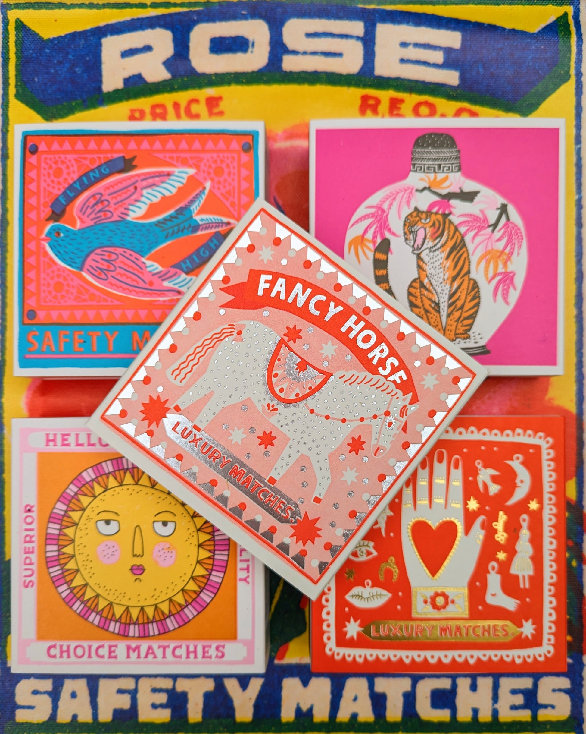 Great vintage packaging style boxes for these luxe large letterpress matches.Designed in the UK using a wide range of illustrators and vintage inspiration.