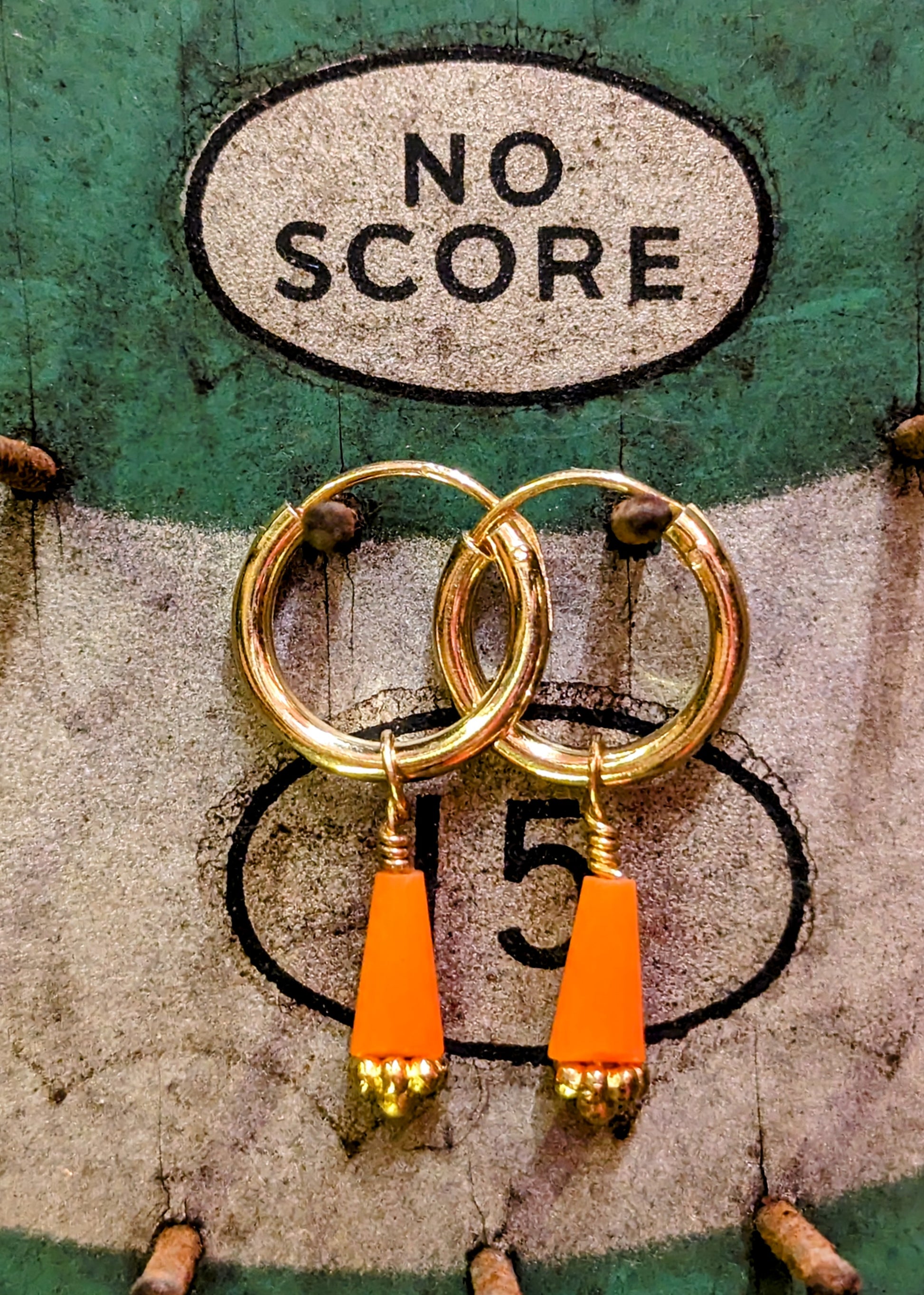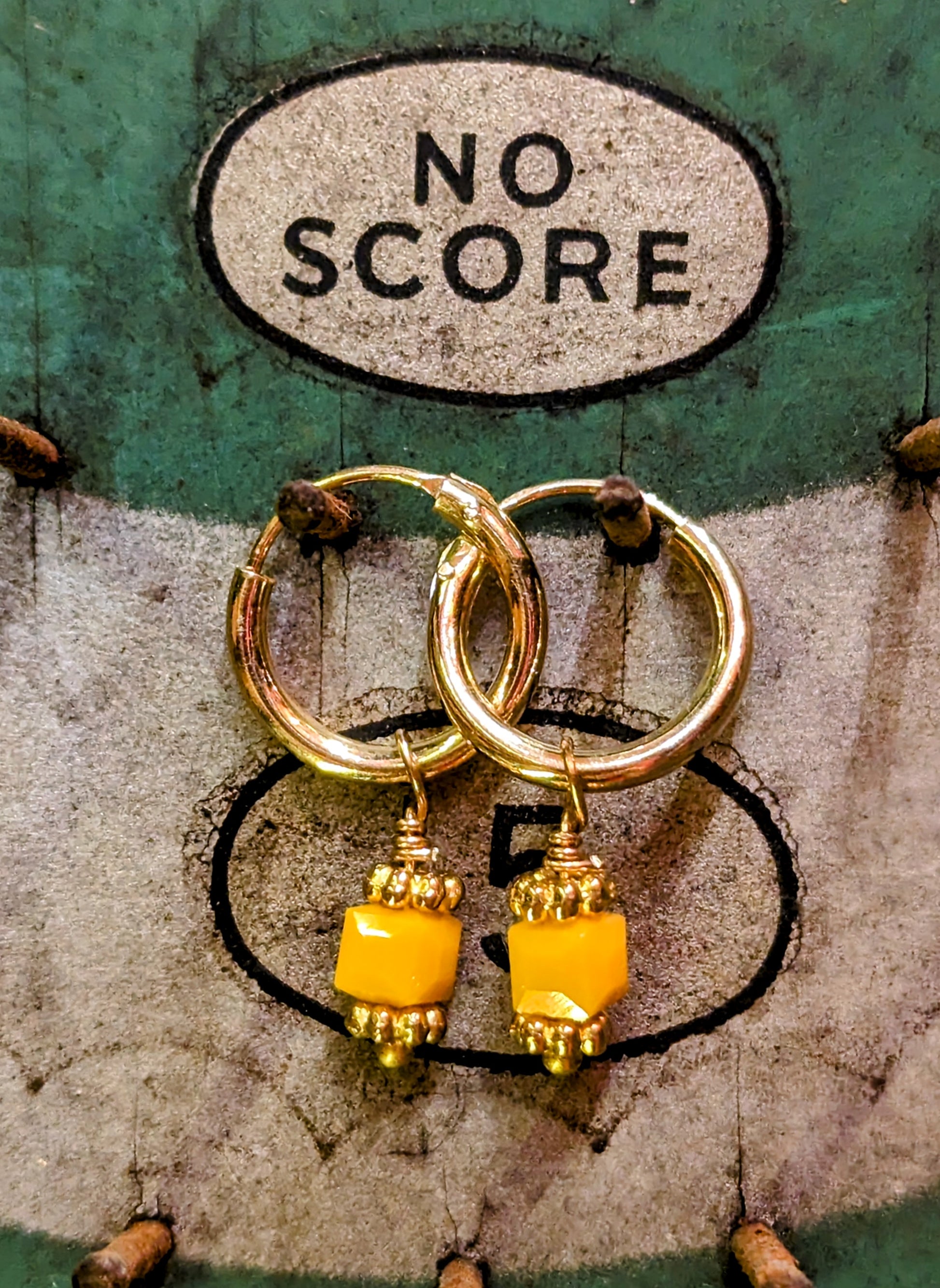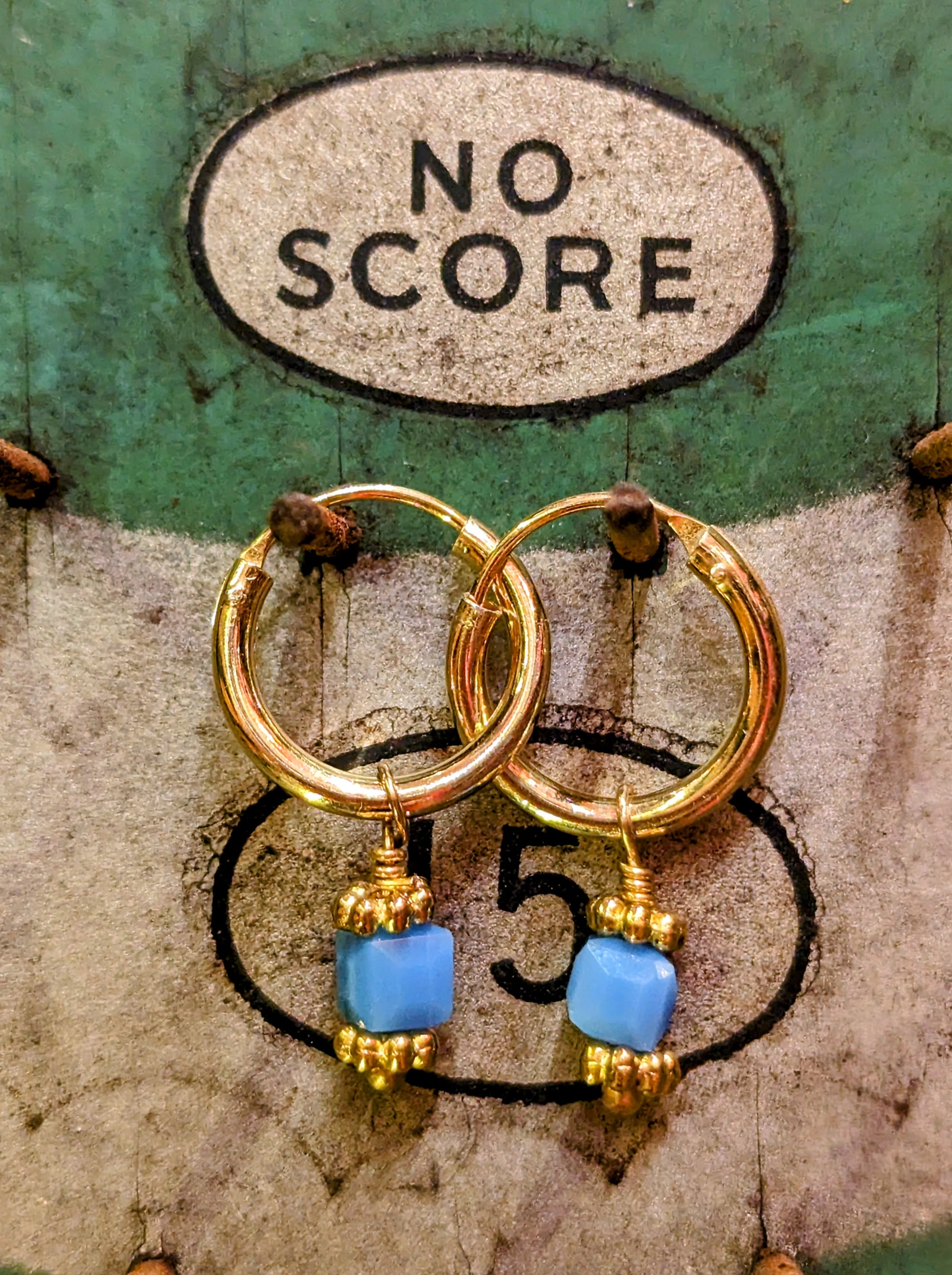 Made by us here at Blackout using goldplated posts and beads on sterling silver, gold plated hoops.