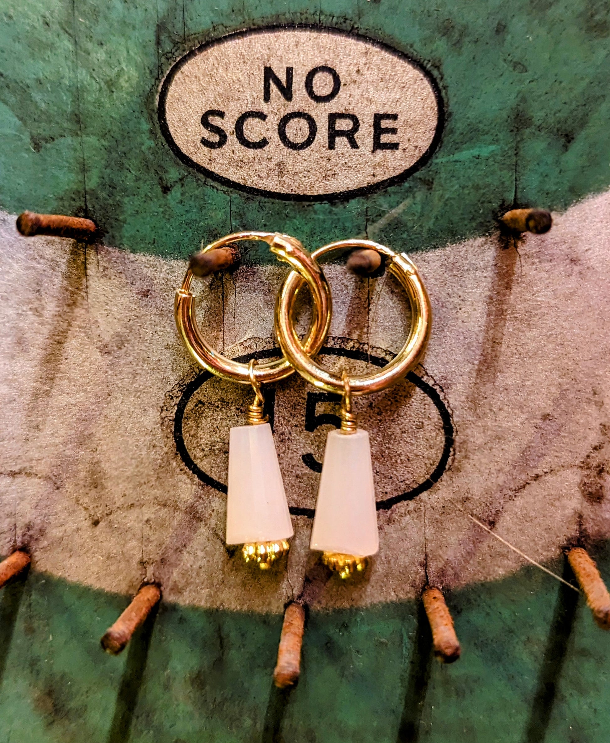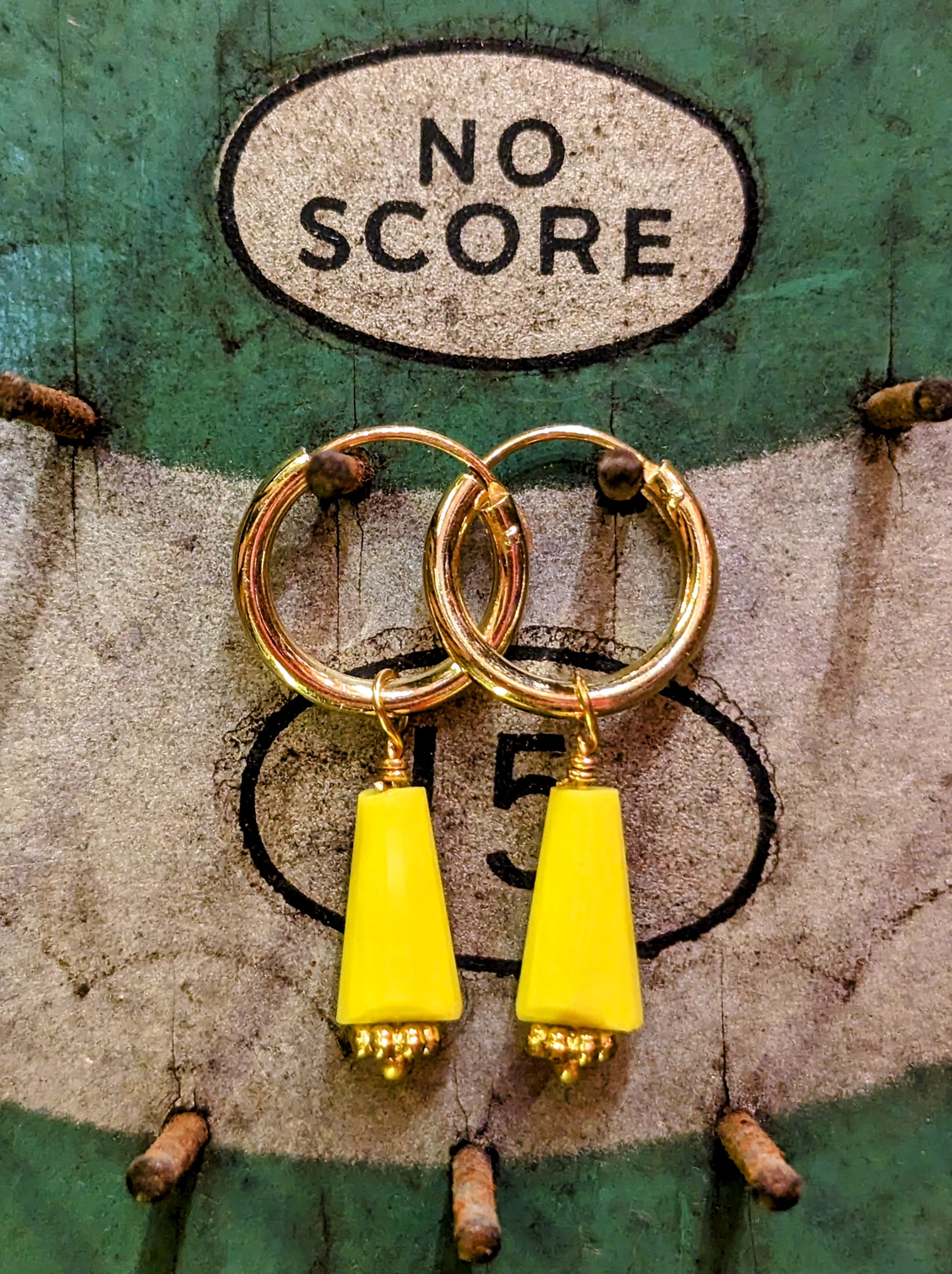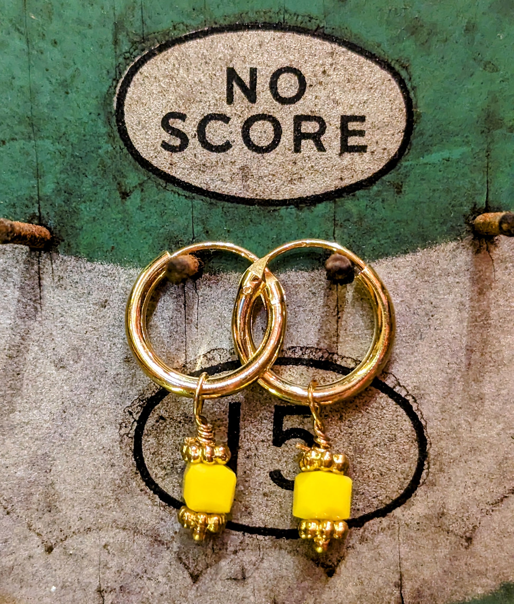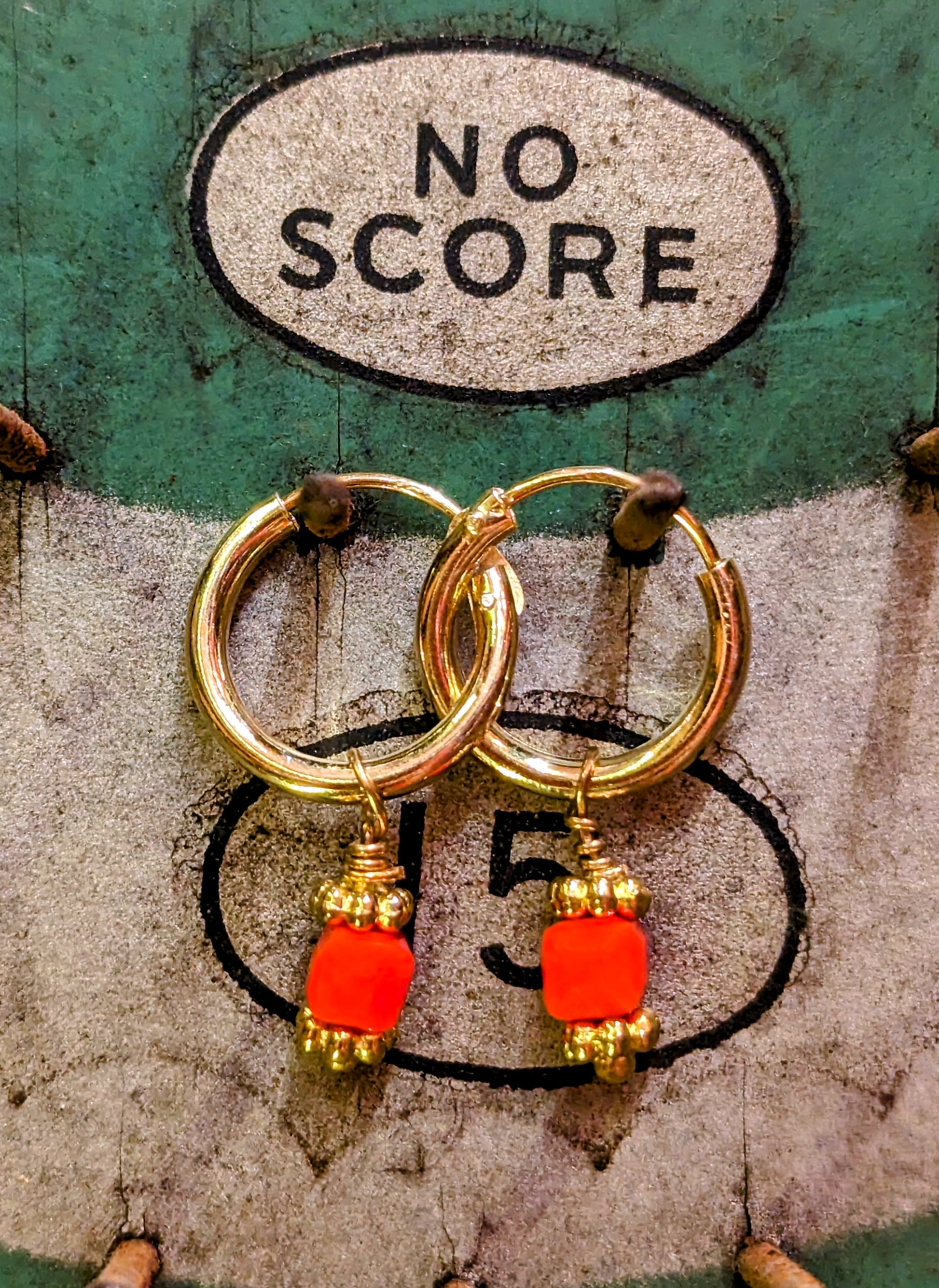 Made by us here at Blackout using goldplated posts and beads on sterling silver, gold plated hoops.