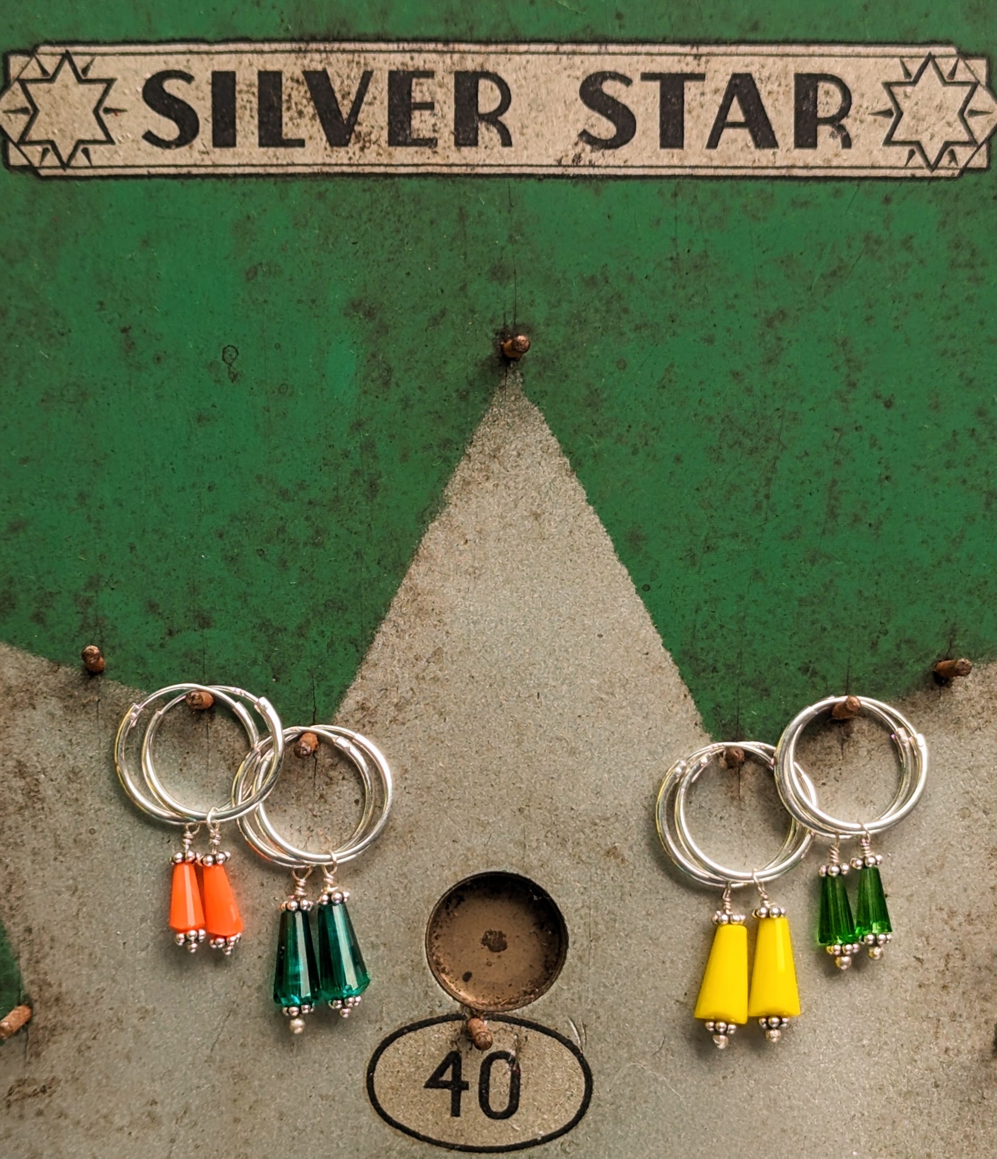 Made by us here at Blackout using goldplated posts and beads on sterling silver, gold plated hoops.