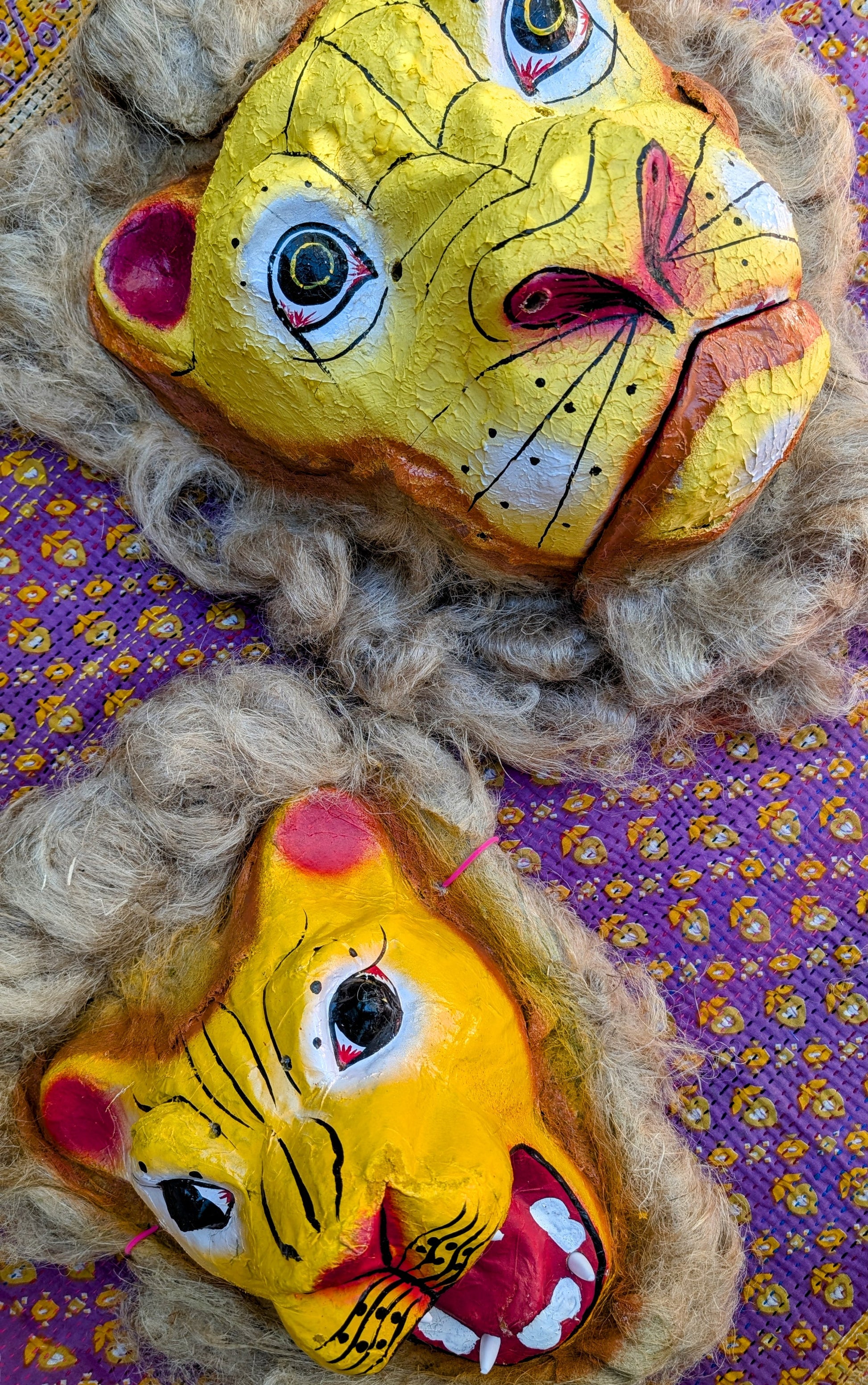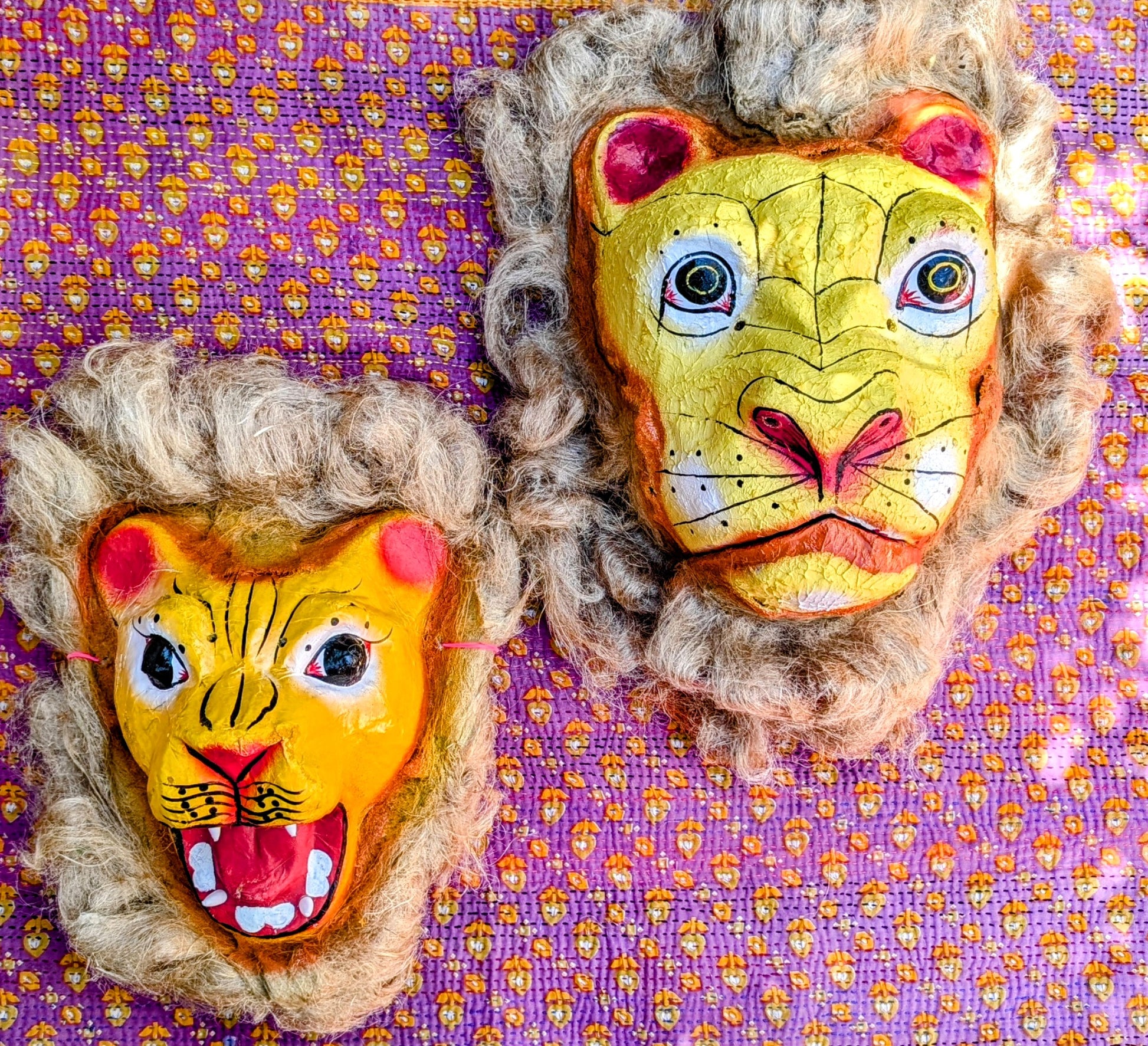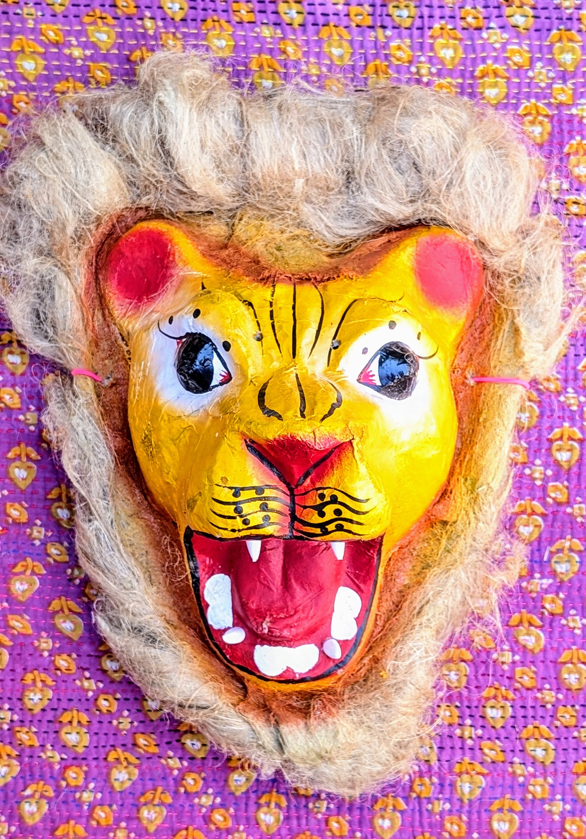 Made by hand from paper mache and plaster these masks and wall art pieces are created for the many hindu festivals in India,and as protective wall pieces to keep the home safe. A dying art that it sadly being pushed out by the mass produced plastic alternatives coming from China. We always trying to source handmade items and keep these traditions alive, but as most of these aren't made now in Delhi, these are mainly vintage.